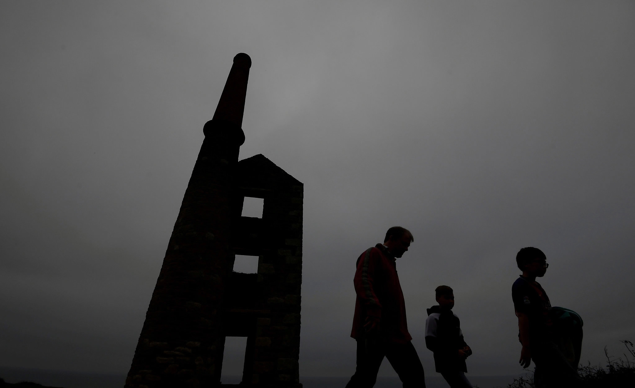 Oct. 26, 2017: A family walk past the remains of the engine house at the Wheal Prosper copper and tin mine, on the Cornish coastline near Porthleven in Cornwall, Britain. /Reuters Photo