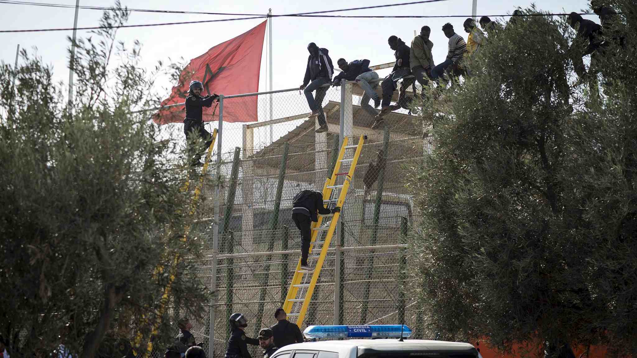 Six-meter parallel fences, often topped with barbed wire or coils of razor blades, curve around the two Spanish territories of Ceuta and Melilla, the only land connection between Europe and Africa.