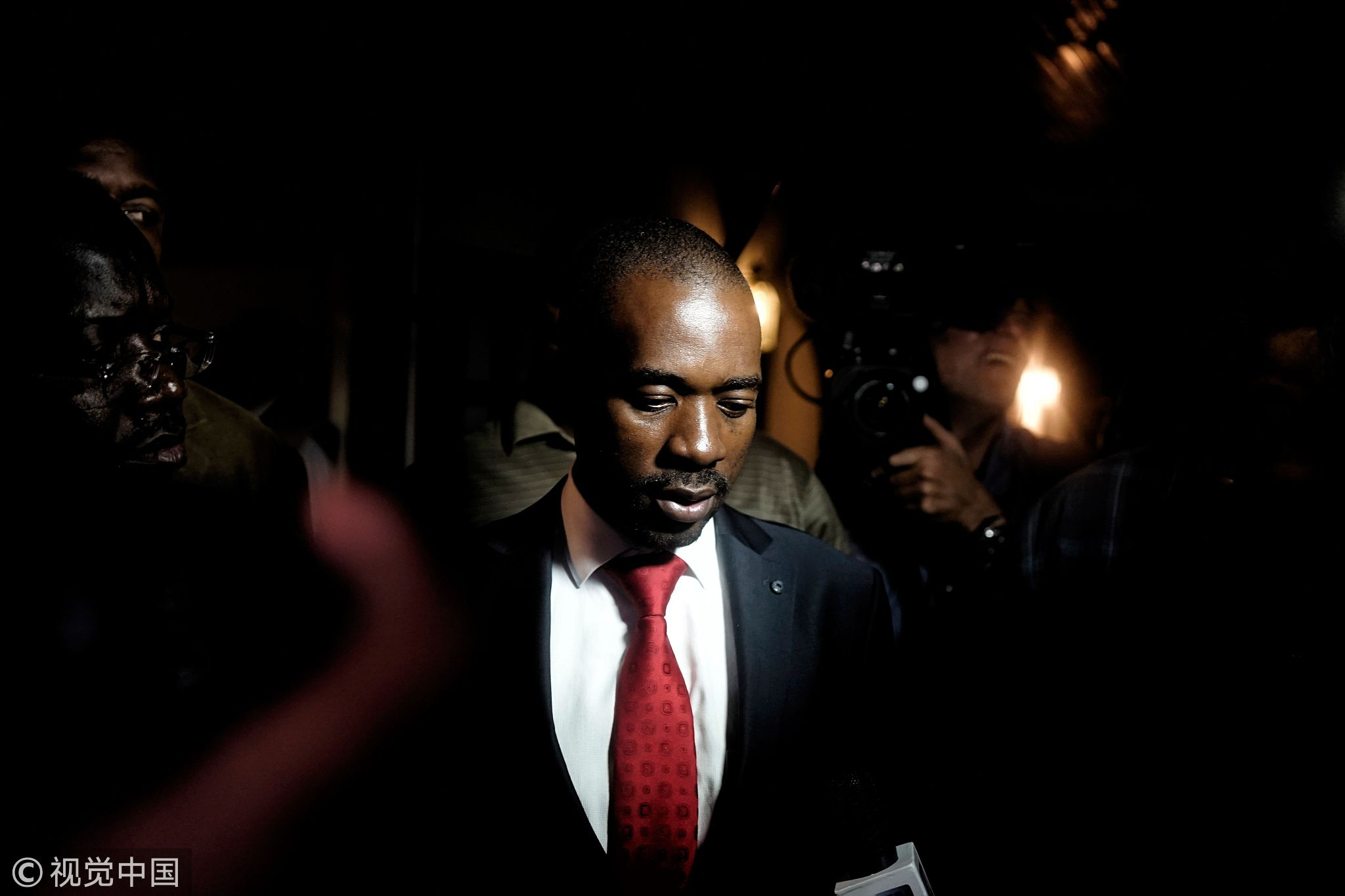 Zimbabwean opposition party Movement for Democratic Change (MDC) Alliance leader Nelson Chamisa speaks to the press in Harare, August 2, 2018. /VCG Photo