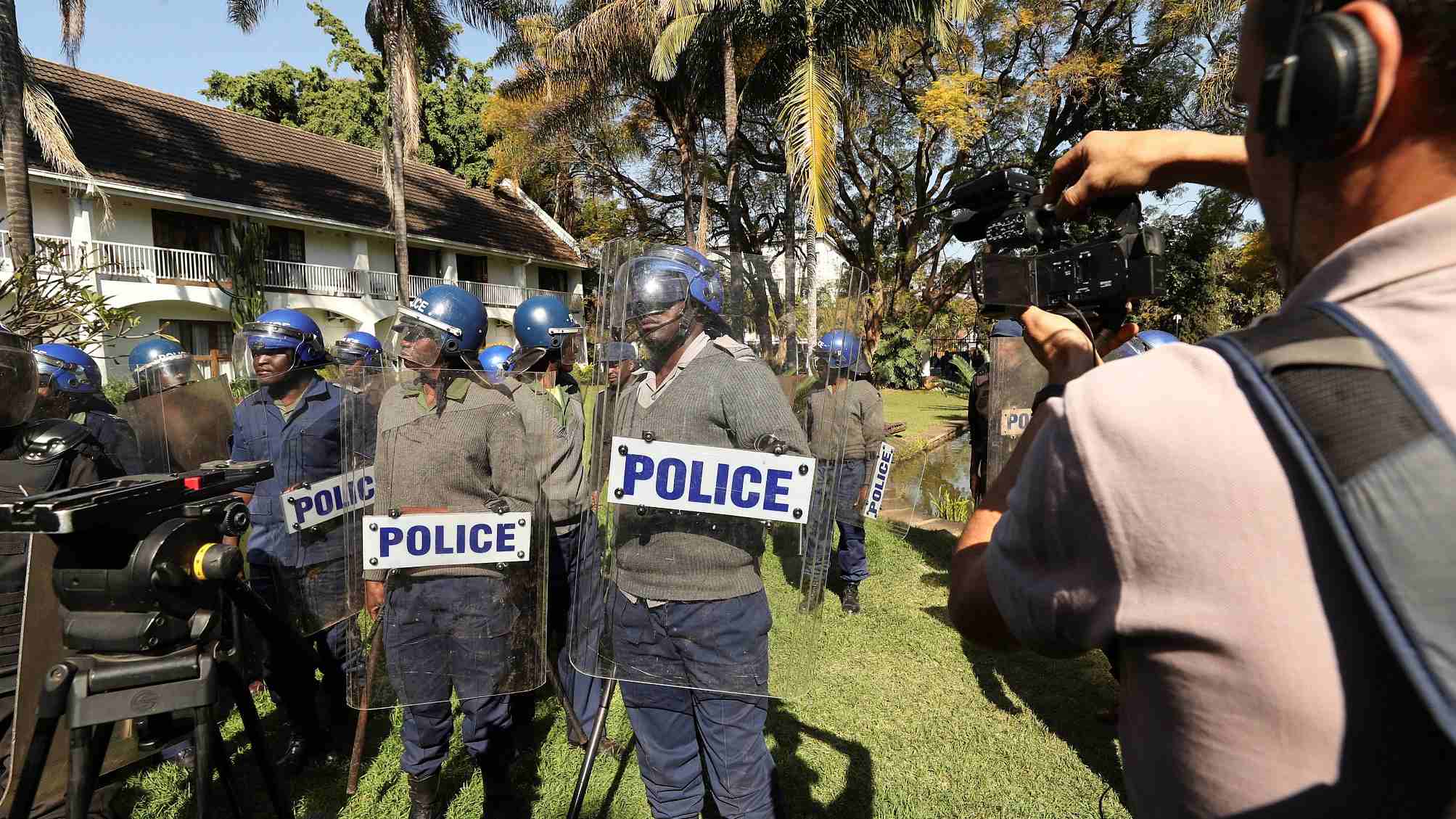 Freedom of speech is "an indispensable part of the new Zimbabwe," the country's newly re-elected President Emmerson Mnangagwa said Friday, criticizing earlier scenes where police chased away journalists waiting for a briefing by his main rival in this week's vote.