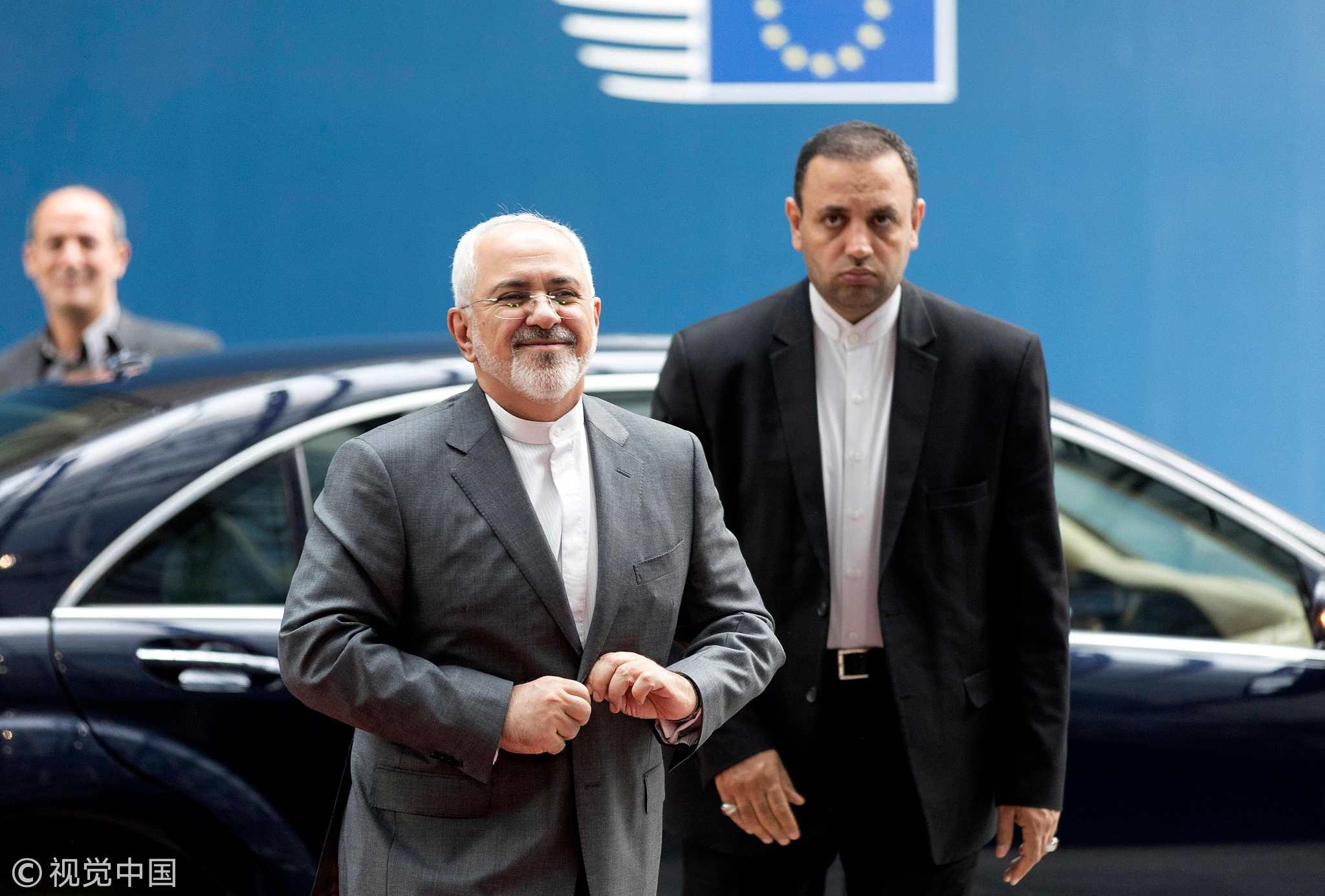 May 15, 2018: Iranian Foreign Minister Mohammad Javad Zarif arrives at the EU headquarters in Brussels ahead of a meeting, with European Union Foreign Policy Chief and EU counterparts, concerning Iran's nuclear deal./ VCG Photo