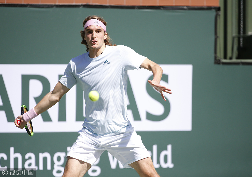 Greek Stefanos Tsitsipas hits a forehand during the second round of the BNP Paribas Open at the Indian Wells, March 9, 2019. /VCG Photo