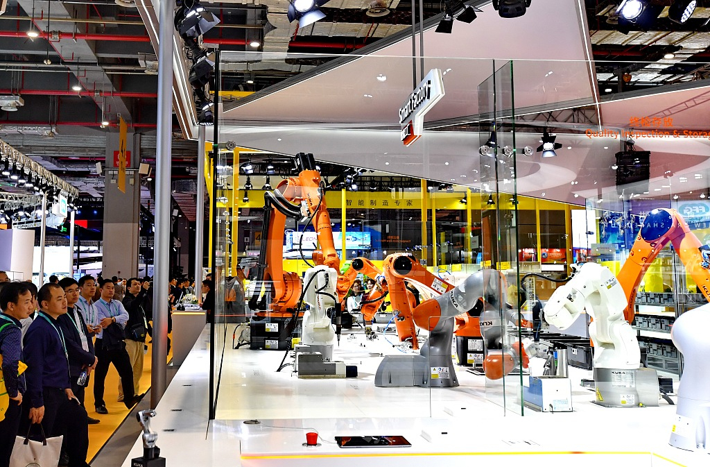 German industrial robot giant KUKA sets up a small intelligent factory at an expo in Shanghai, China, November 5, 2018. /VCG Photo