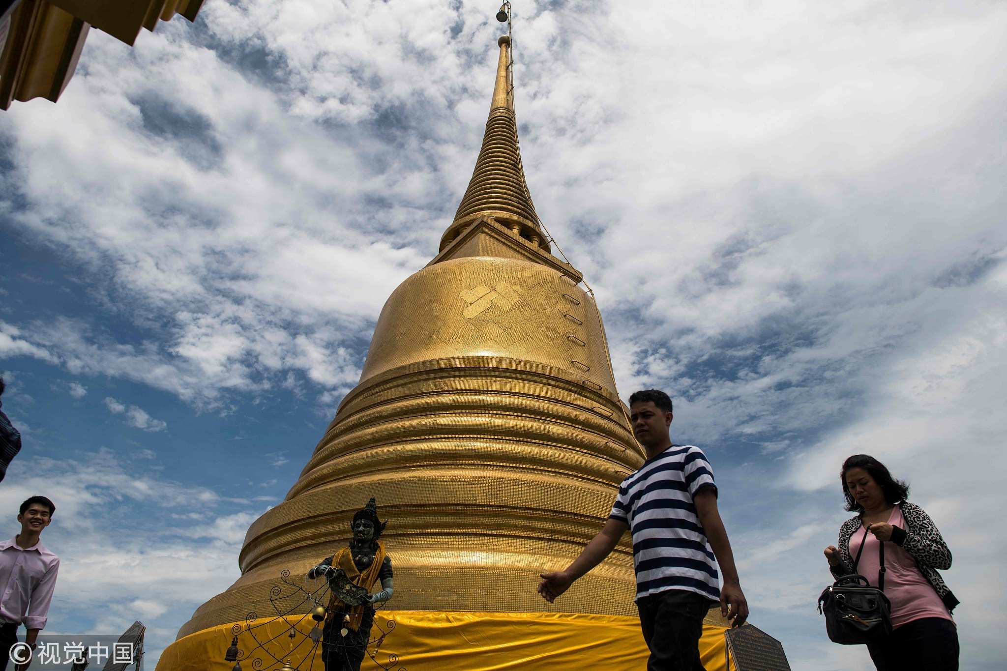 Tourists visit the Wat Saket temple, better known as 'Golden Mount', in Bangkok, May 24, 2018. /VCG Photo