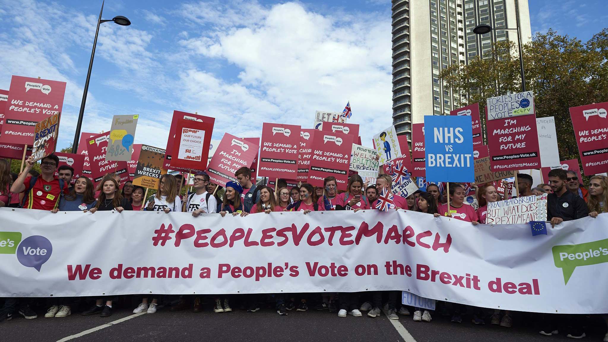 Tens of thousands of protesters gathered in central London on Saturday to call for a second referendum on Britain's exit from the EU. Demonstrators are demanding the public to have a final say on the government's Brexit deal with the EU. There are growing fears of a "no-deal" exit, which could create chaos at the border and in the economy.