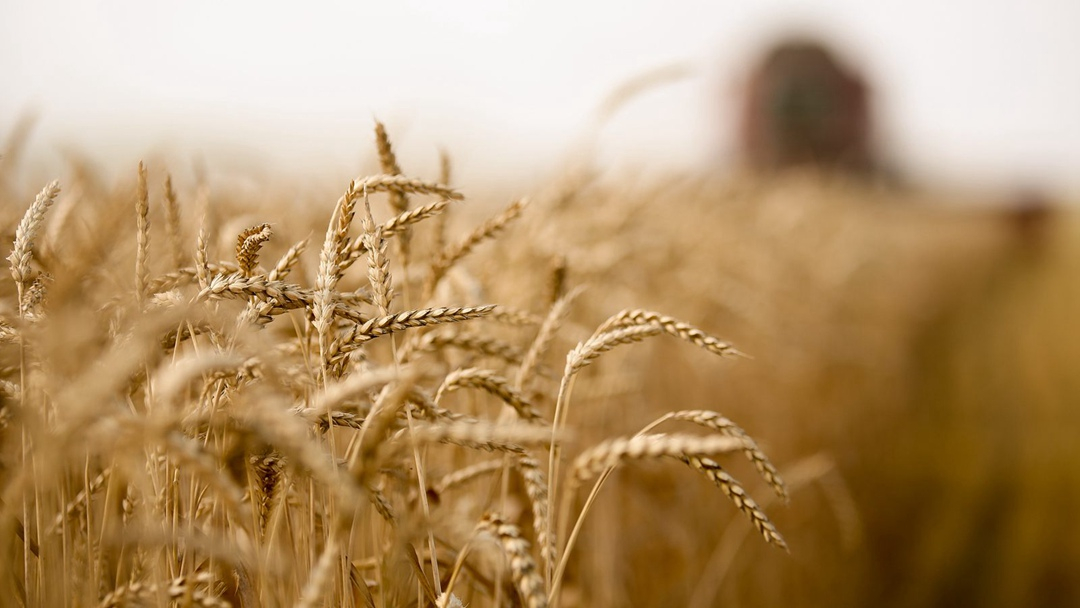 Wheat kernels stand in a field during the summer wheat harvest on a farm in Novoalexandrovsk, Russia, on July 16, 2017. /VCG Photo