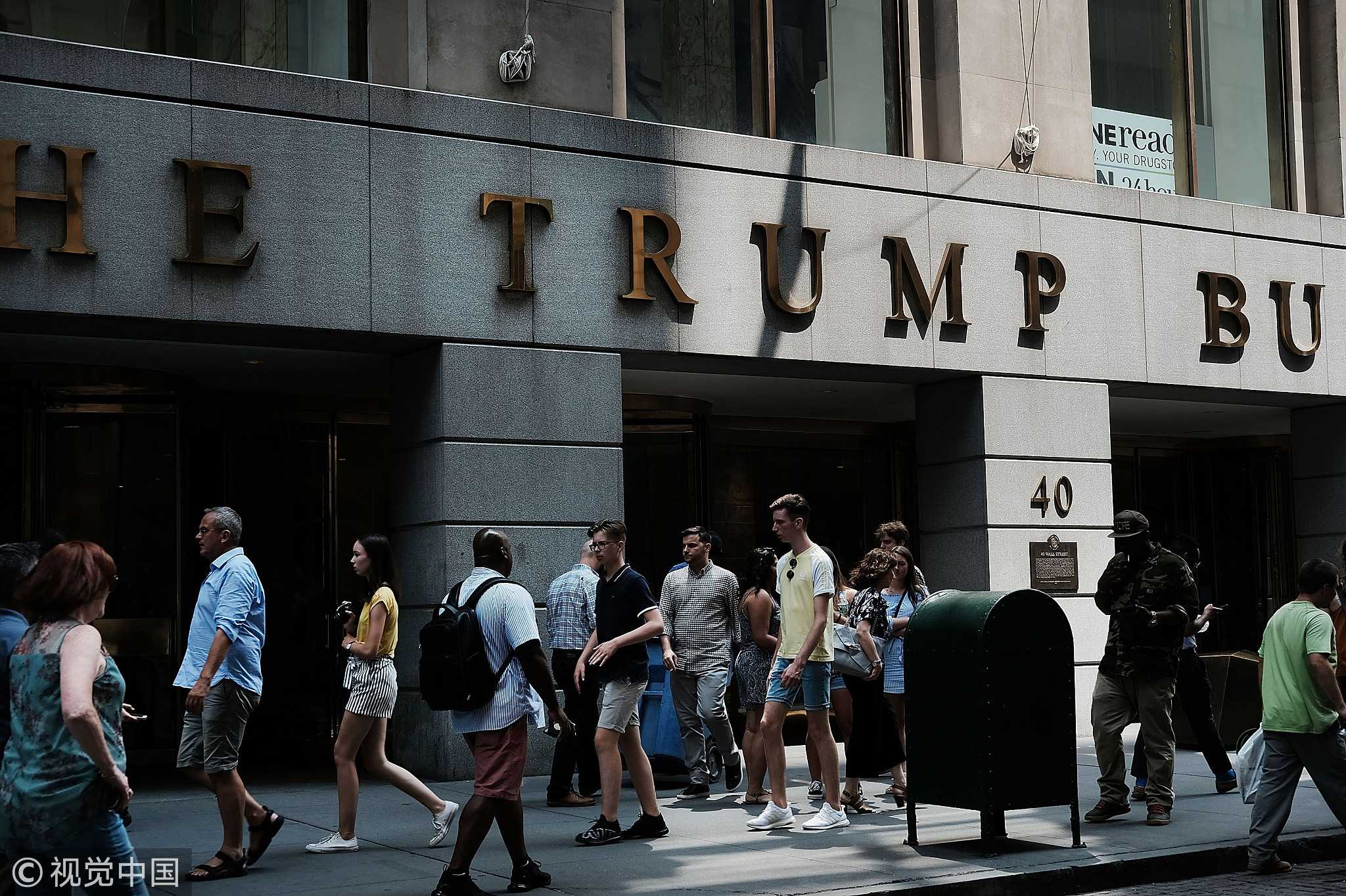 People walk by a Trump branded building in lower Manhattan on July 27, 2018 in New York City. /VCG Photo