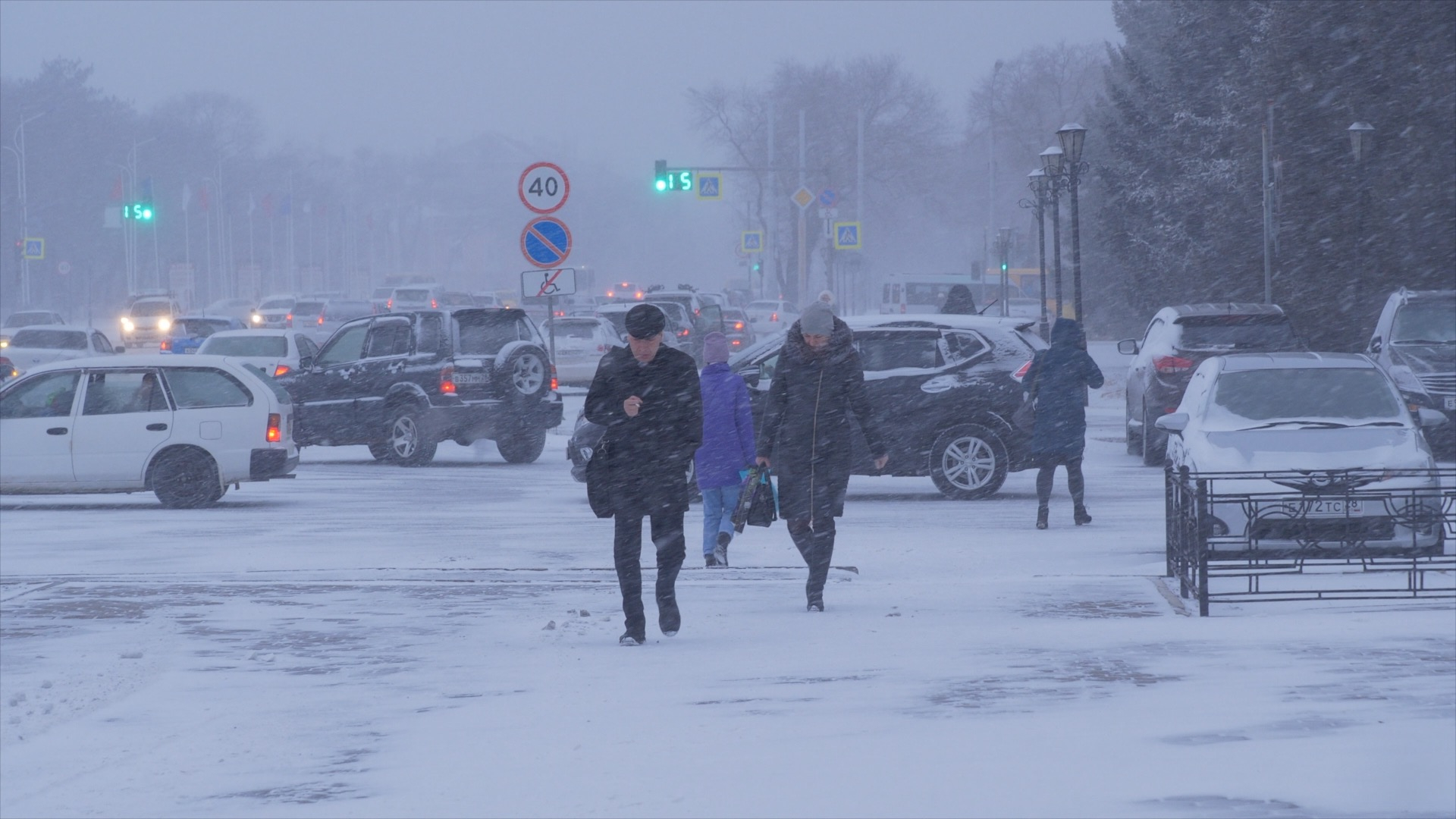 Snow blizzard in the middle of March in Blagoveshchensk. /CGTN Photo