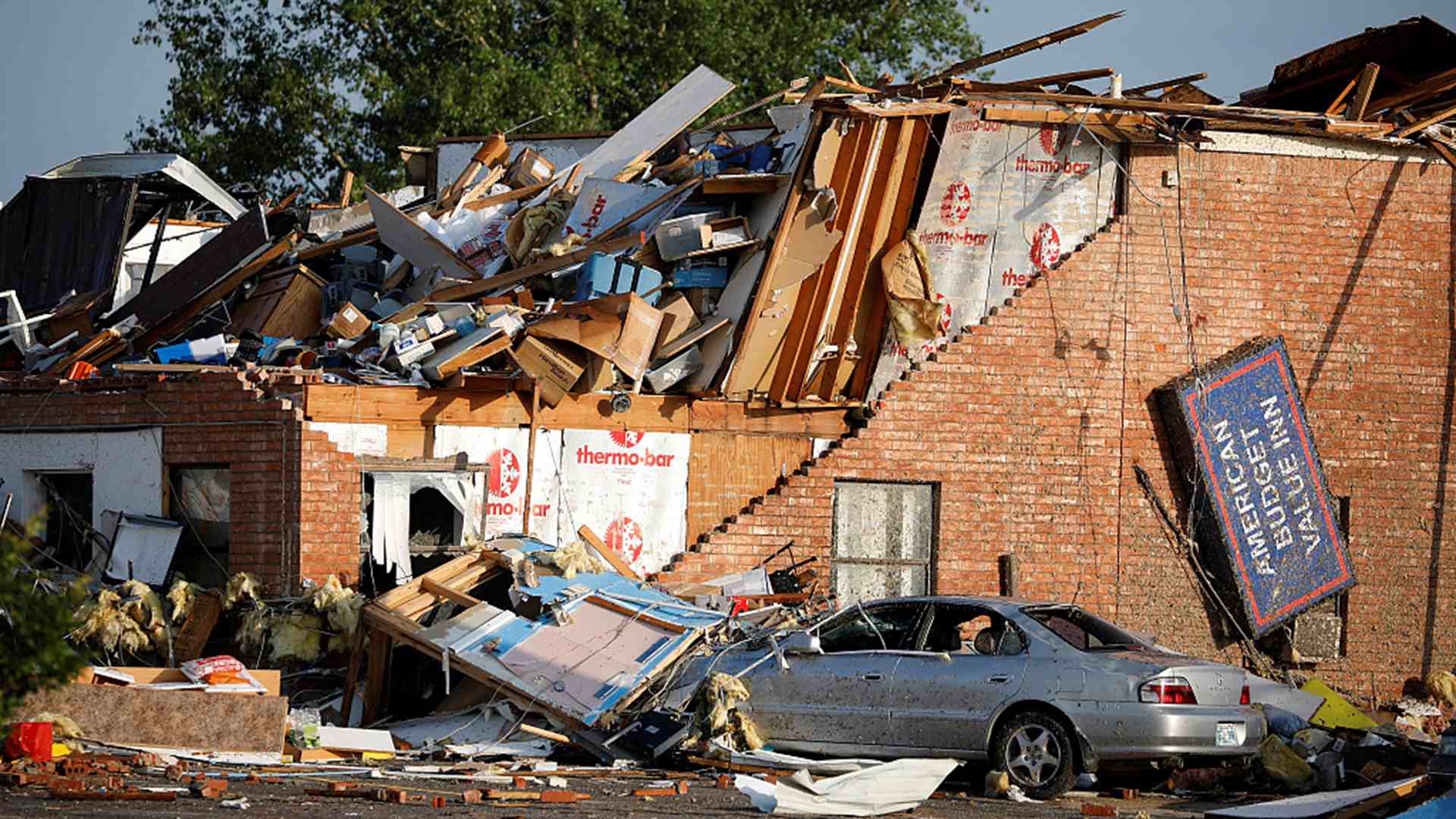 A tornado leveled a motel and tore through a mobile home park near Oklahoma City overnight. The tornado killed two people and injured at least 29 others, authorities said. It was spawned by a powerful storm system that rolled through the state. National Weather Service personnel were assessing the damage. The agency gave the twister a preliminary EF-2 rating, which means it had wind speeds of 179-217 kph.