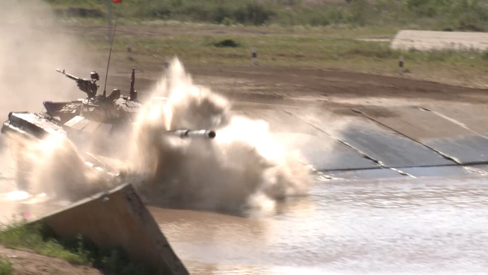 Russia, China and 18 other countries are taking part in a “tank biathlon,” where Soviet tanks weighing four tons race across a three-kilometer assault course.