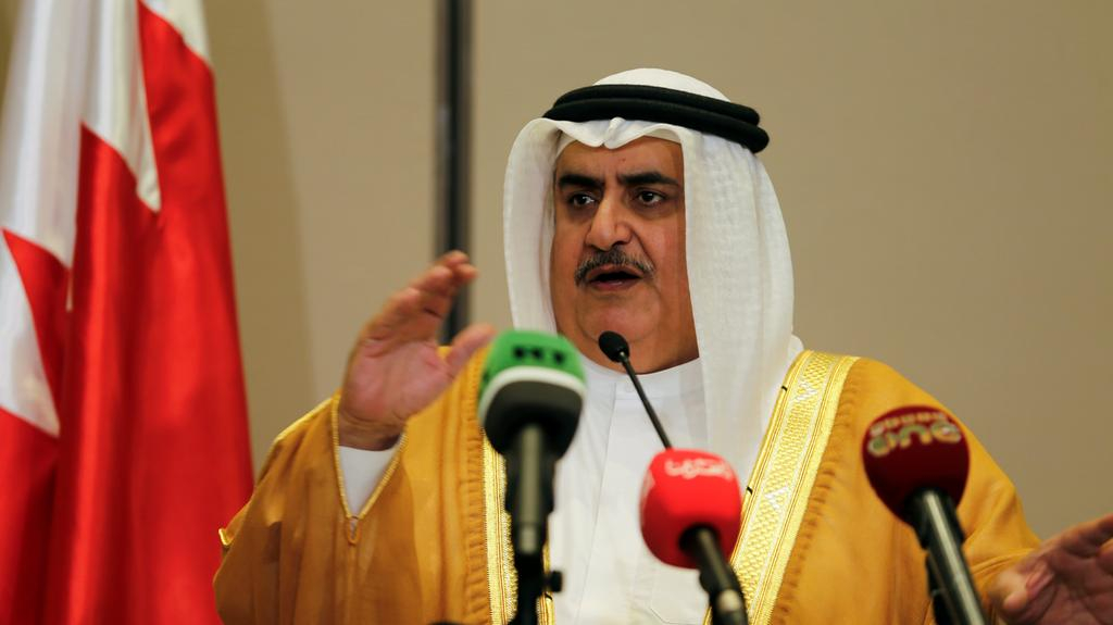 July 30, 2017: Bahraini foreign minister Sheikh Khalid bin Ahmed al-Khalifa speaks to the media after the quartet's meeting in Manama, Bahrain. /Reuters Photo