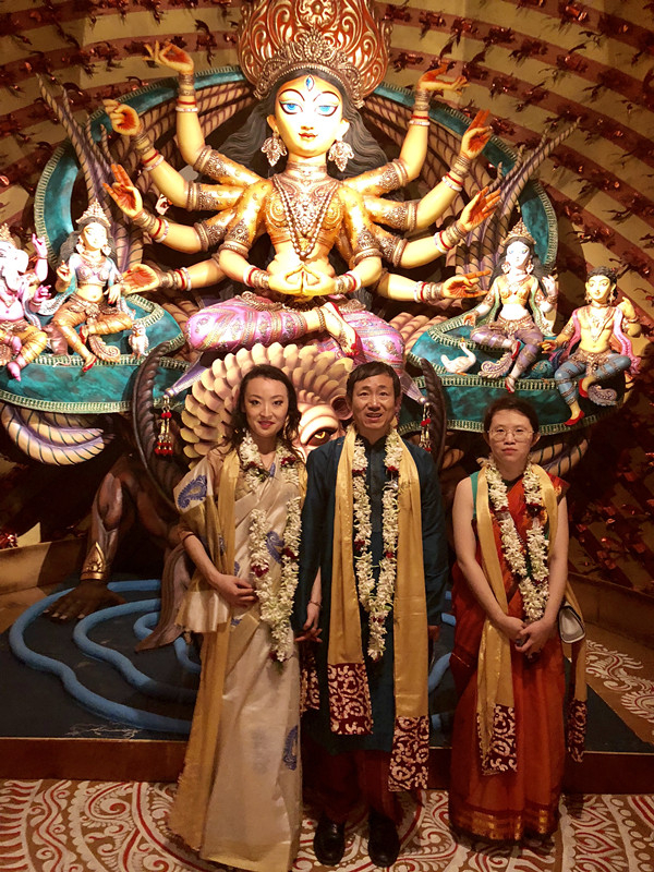 Ma Zhanwu (C), China's Consul General in Kolkata, and his wife Yang Li (L) attend another Durga Puja inauguration in Kolkata, Oct. 11, 2018. / Photo via Chinese Consulate General in Kolkata