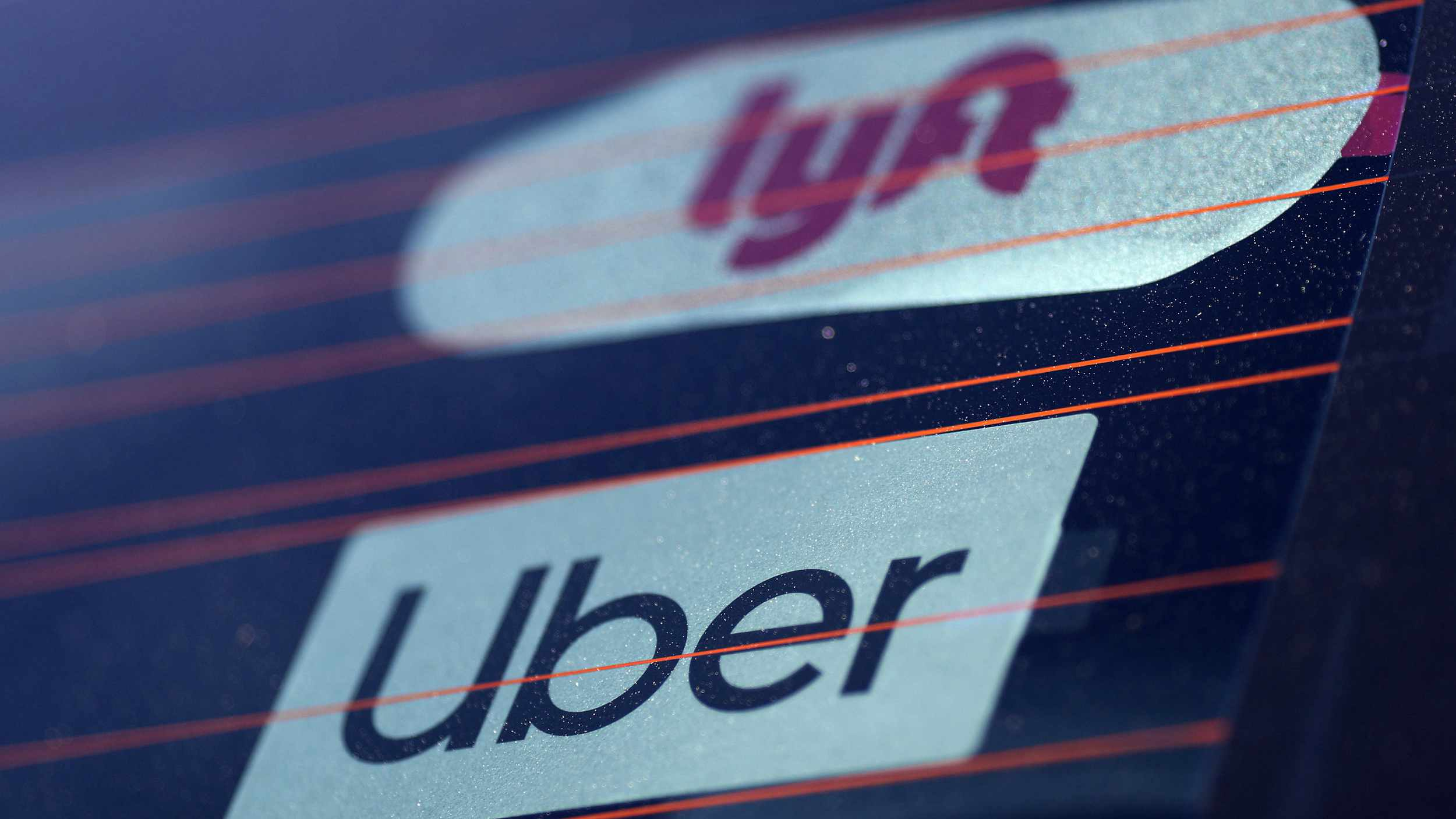 Uber and Lyft signs are seen on a car in Redondo Beach, California, U.S., March 25, 2019. /VCG Photo