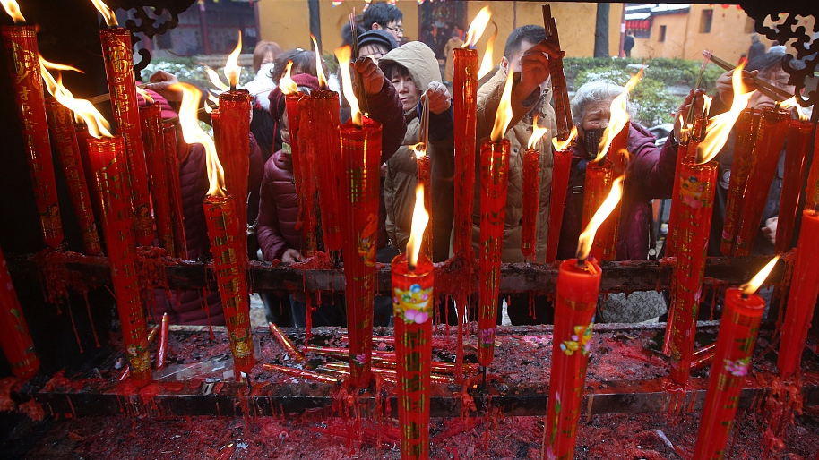 To commemorate this occasion, which symbolizes happiness and good fortune, hundreds of thousands of people flocked to temples across China to pray for blessings and good fortune. /VCG Photo