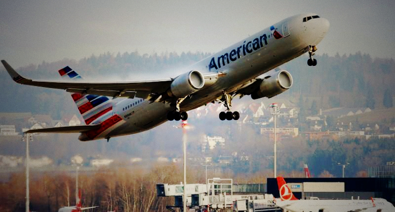 An American Airlines Boeing 767-300ER aircraft takes off from Zurich Airport, on January 9, 2018. /VCG Photo