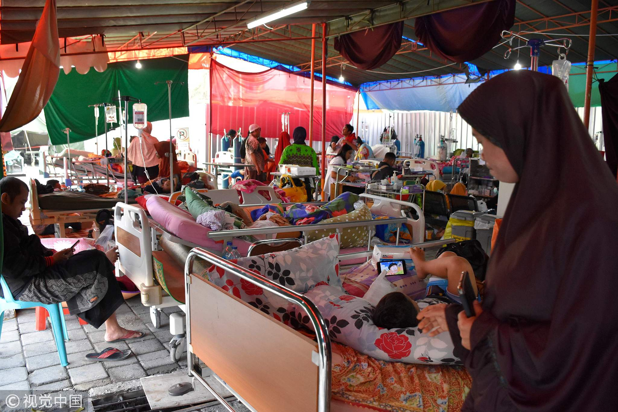 Patients stay at a makeshift hospital ward in Mataram on Indonesia's Lombok island after a series of earthquakes on August 20, 2018. /VCG Photo