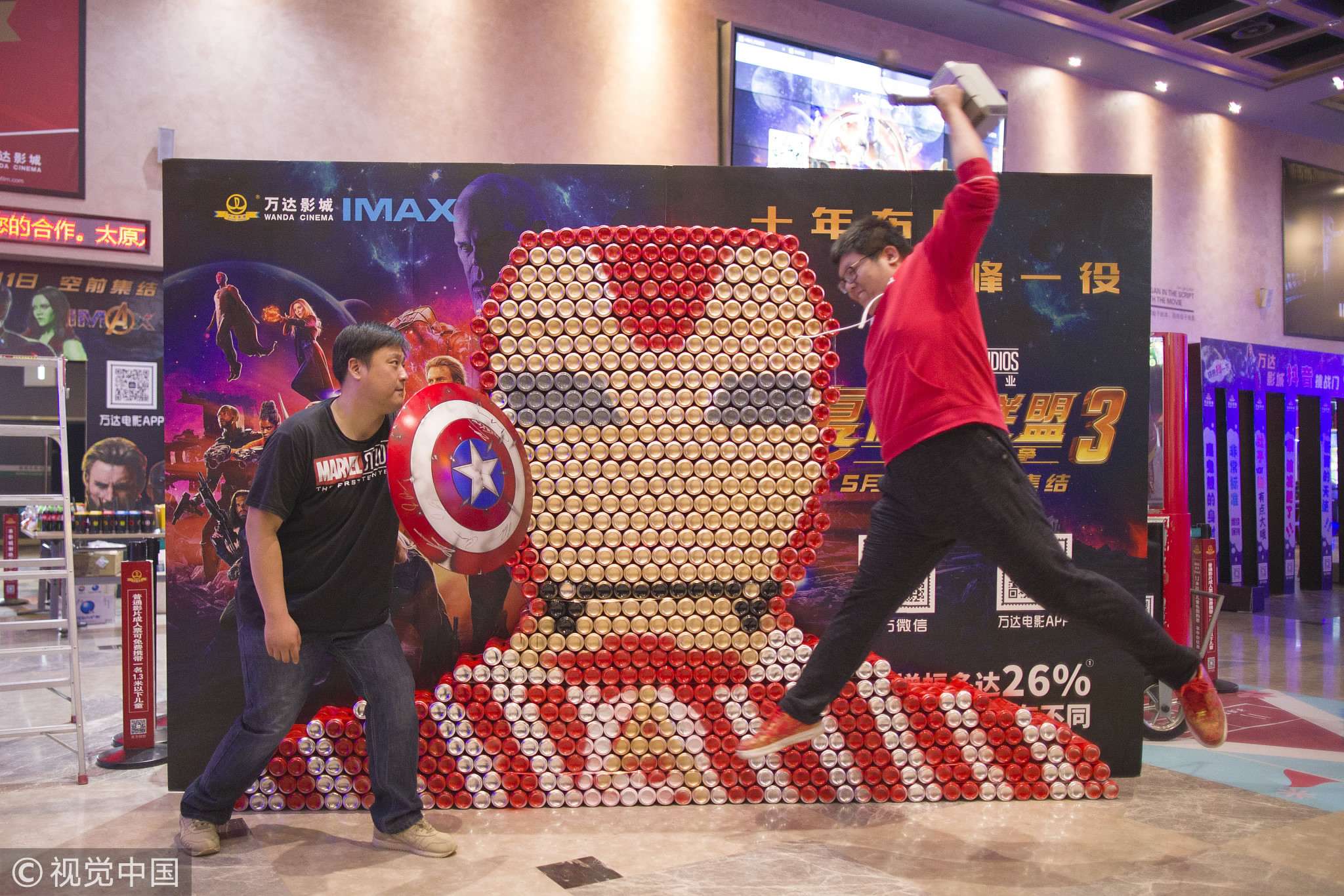 Movie goers are flooding into a cinema for "Avengers: Infinity War" in Taiyuan, north China's Shanxi Province, on the premier day. /VCG Photo