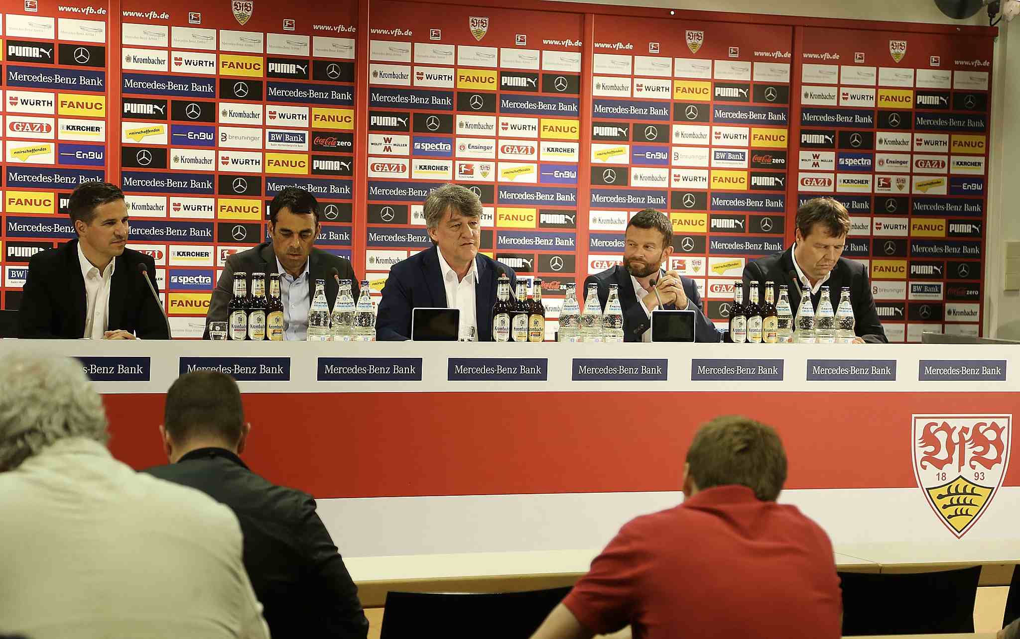 Jochen Roettgermann (2nd right) and other chiefs of the VfB Stuttgart attend a press conference at Mercerdes-Benz Arena in Stuttgart, Germany, May 25, 2015. /VCG Photo