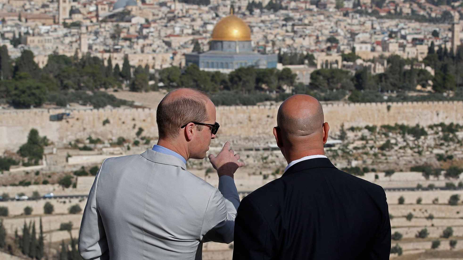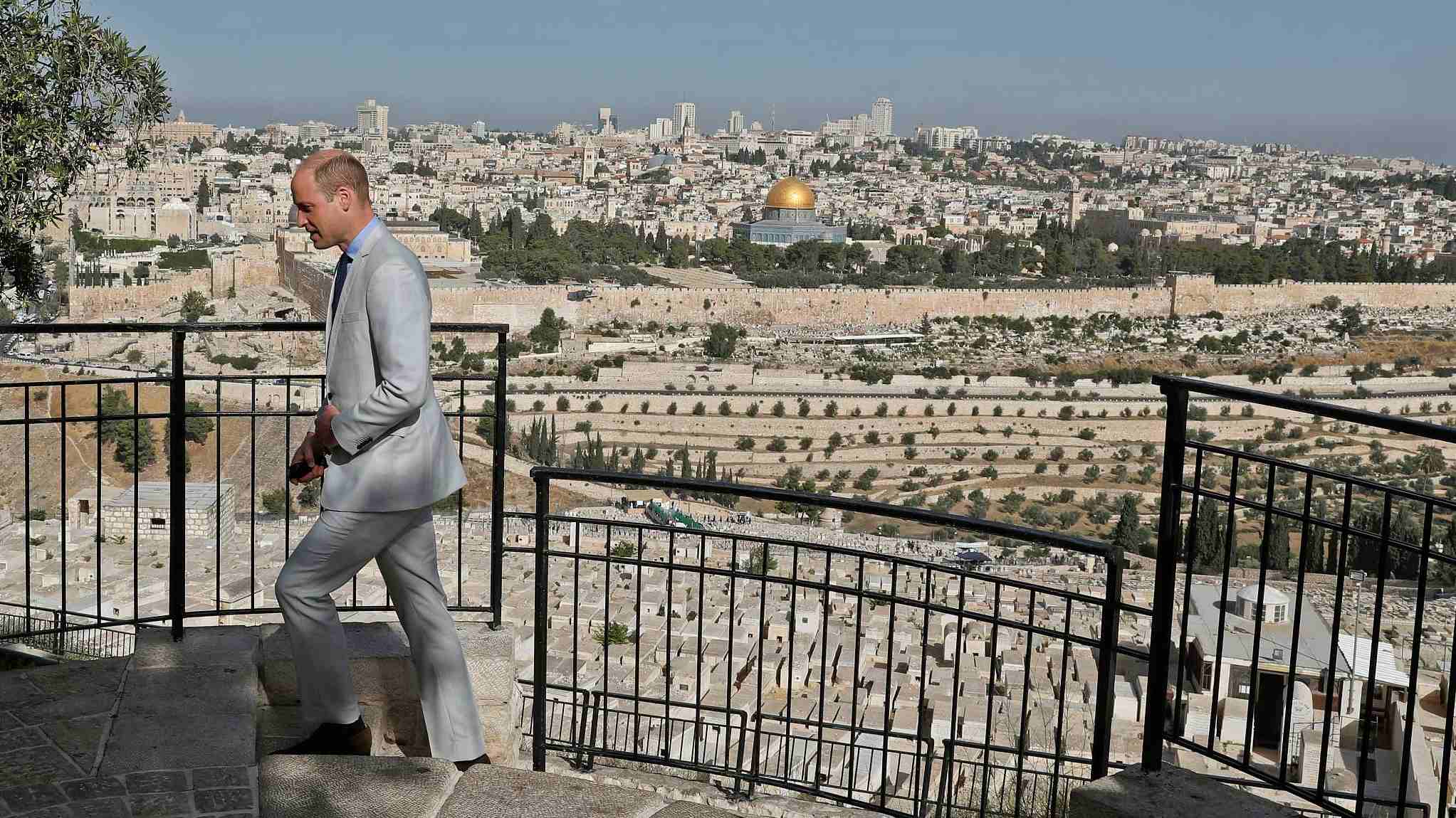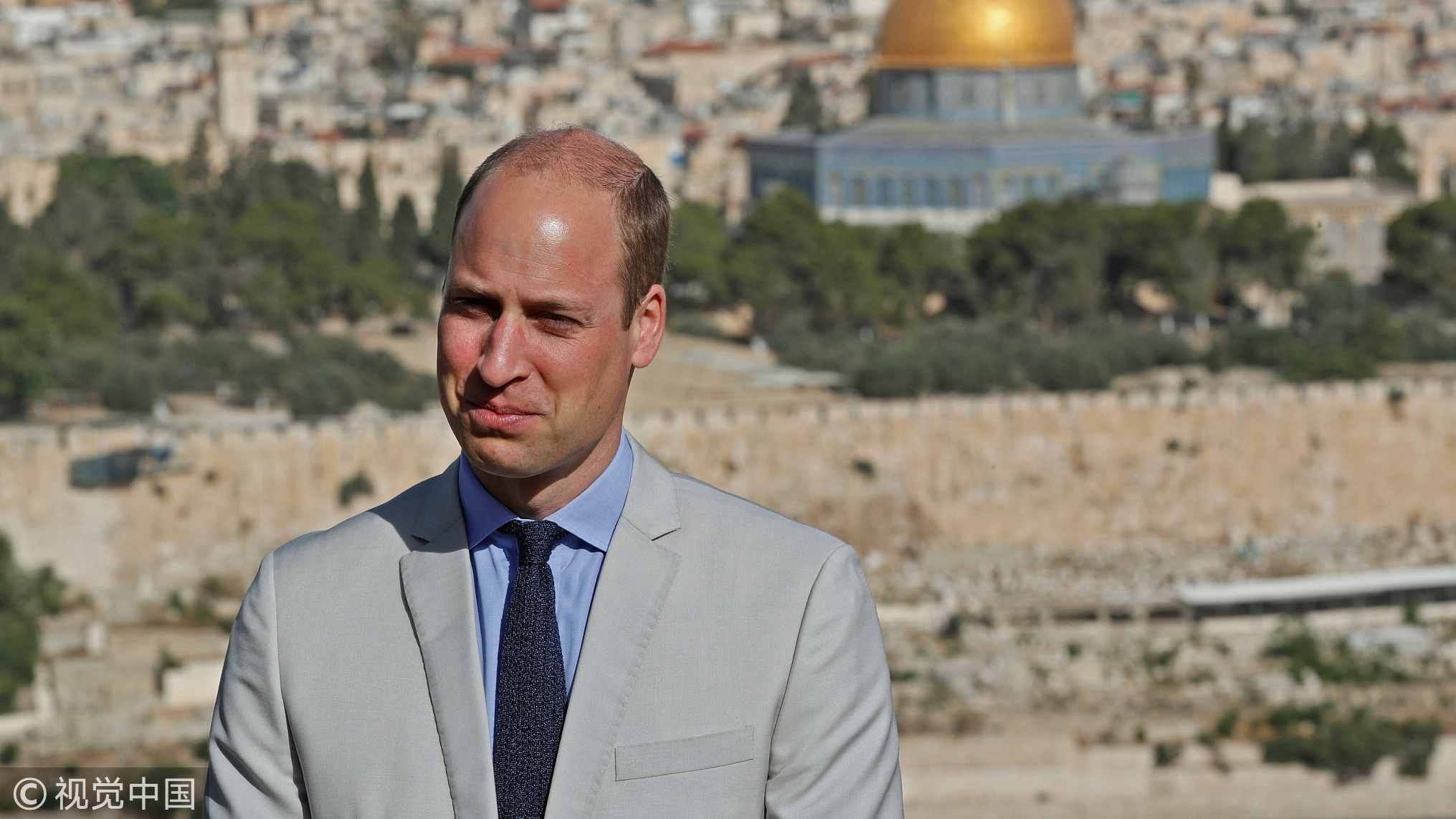 Britain’s Prince William visited an observation point on the Mount of Olives overlooking Jerusalem’s old city on the final day of his tour of the Middle East on June 28, 2018. /VCG Photo