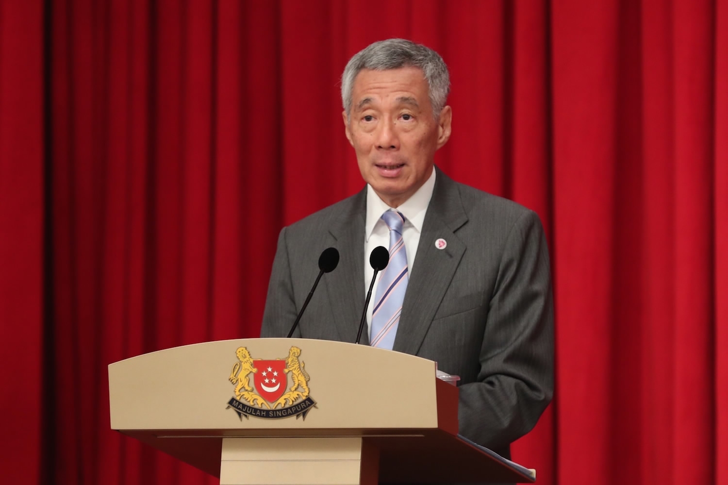 Singapore's Prime Minister Lee Hsien Loong addresses the ASEAN Summit's working dinner at the Istana, Singapore. /ASEAN 2018 Organizing Committee Photo