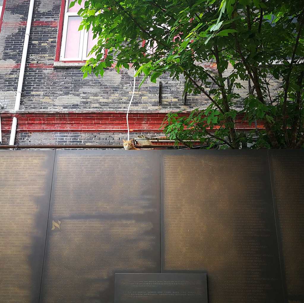 A wall with the names of Jews who sought refuge in Shanghai during WWII in the Museum. /CGTN Photo