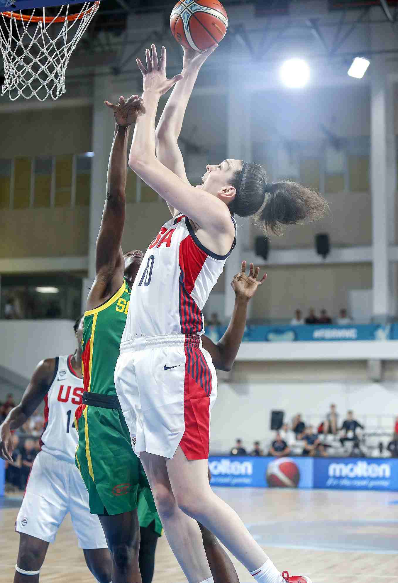 Breanna Stewart #10 of the USA National Team shoots the ball against the Senegal National Team during the 2018 FIBA Women's Basketball World Cup match in Tenerife, Spain, September 22, 2018. /VCG Photo