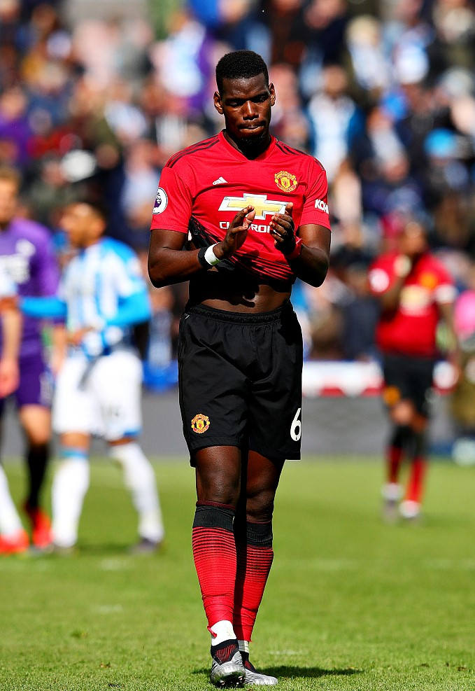 Paul Pogba of Manchester United seems disappointed after their 1-1 tie against Huddersfield Town A.F.C. at Kirklees Stadium, May 5, 2019. /VCG Photo