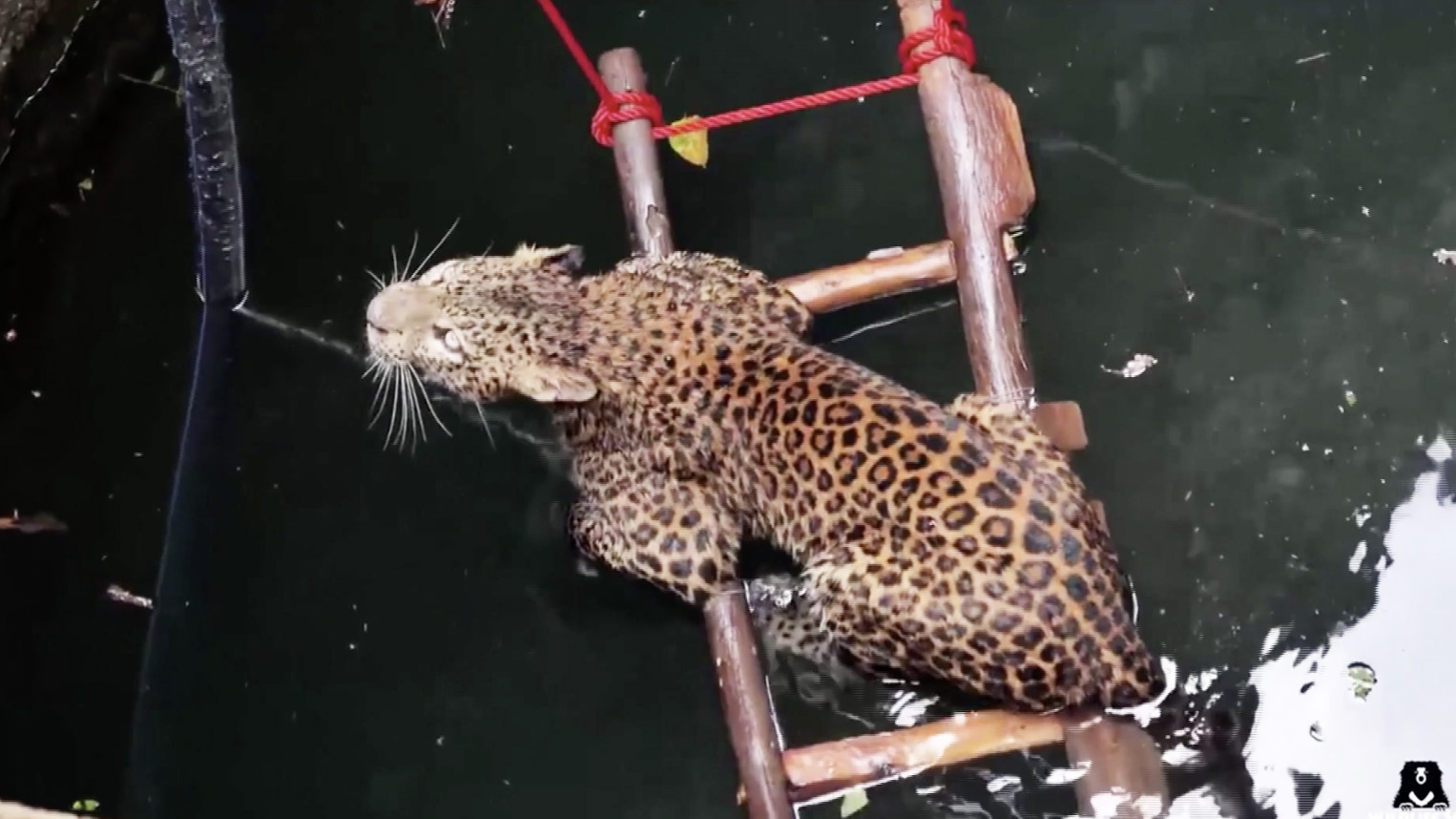 A leopard was rescued by a wildlife charity working with India's forestry department. The leopard fell in a 30-foot well.