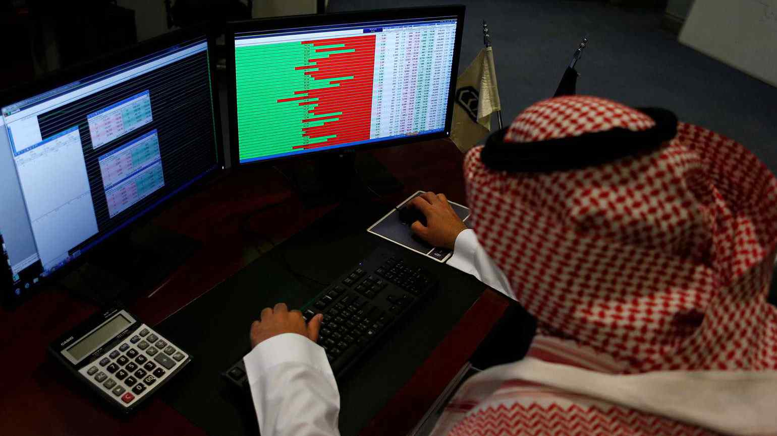 A Saudi trader observes the stock market on monitors at Falcom stock exchange agency in Riyadh, Saudi Arabia in February 7, 2018. /VCG Photo