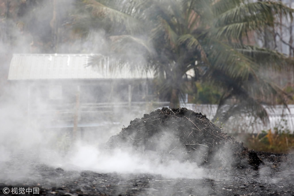 Volcanic gases rise from the ground in a yard in Leilani Estates during ongoing eruptions of the Kilauea Volcano in Hawaii, US, May 18. /Photo via VCG