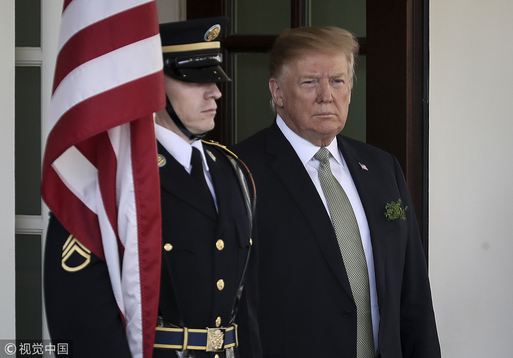 President Donald Trump waits outside of the West Wing of the White House for the arrival of Irish Prime Minister Leo Varadkar, in Washington, DC, March 14, 2019. /VCG Photo