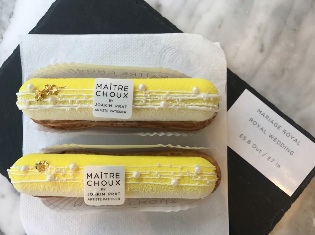 London patisserie Maitre Choux is celebrating the royal wedding with a special lemon and elderflower eclair – the same flavors that Prince Harry and Meghan are using in their wedding cake. This seemed like the perfect way to celebrate the royal couple’s d'eclair-ation of love, so I popped into their Soho store for a taste and it was "mouthwateringly" delicious. If the royal cake is as good as the royal eclair, then the wedding guests are in for a treat.