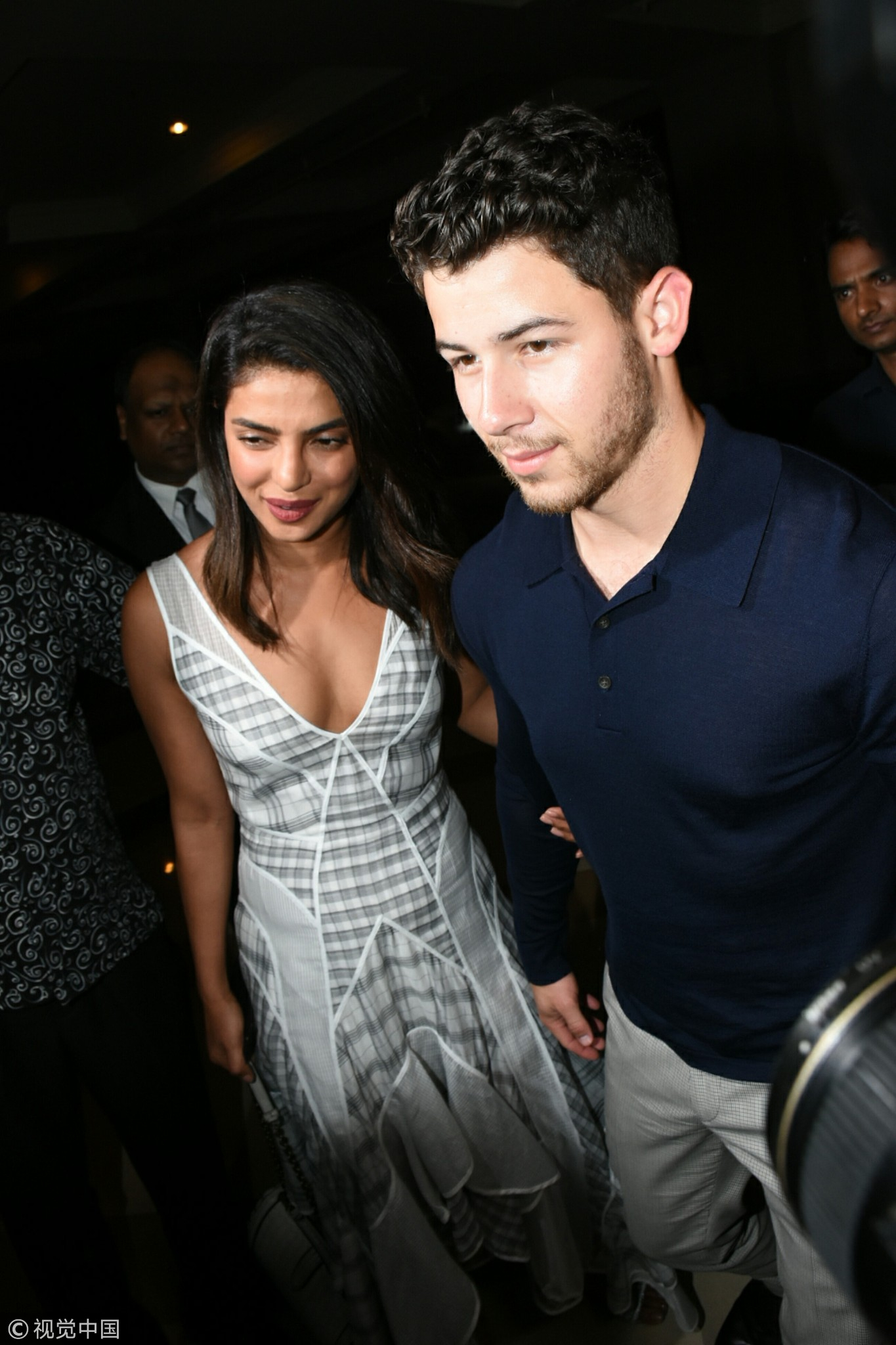 Priyanka Chopra (L) and Nick Jonas are seen out on a dinner date at JW Marriott, Mumbai, August 17, 2018. /VCG Photo