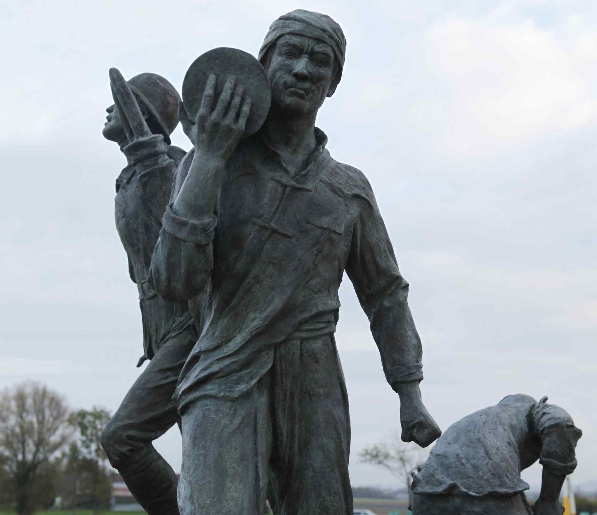 November 15, 2017: Bronze statues of Chinese workers in World War I are unveiled in Poplinger City bordering France in western Belgium. /VCG Photo