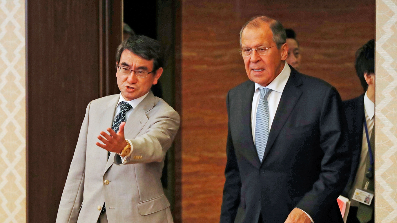 Lavrov's comment, in Russian, was translated into Japanese at a joint news conference with Kono.
