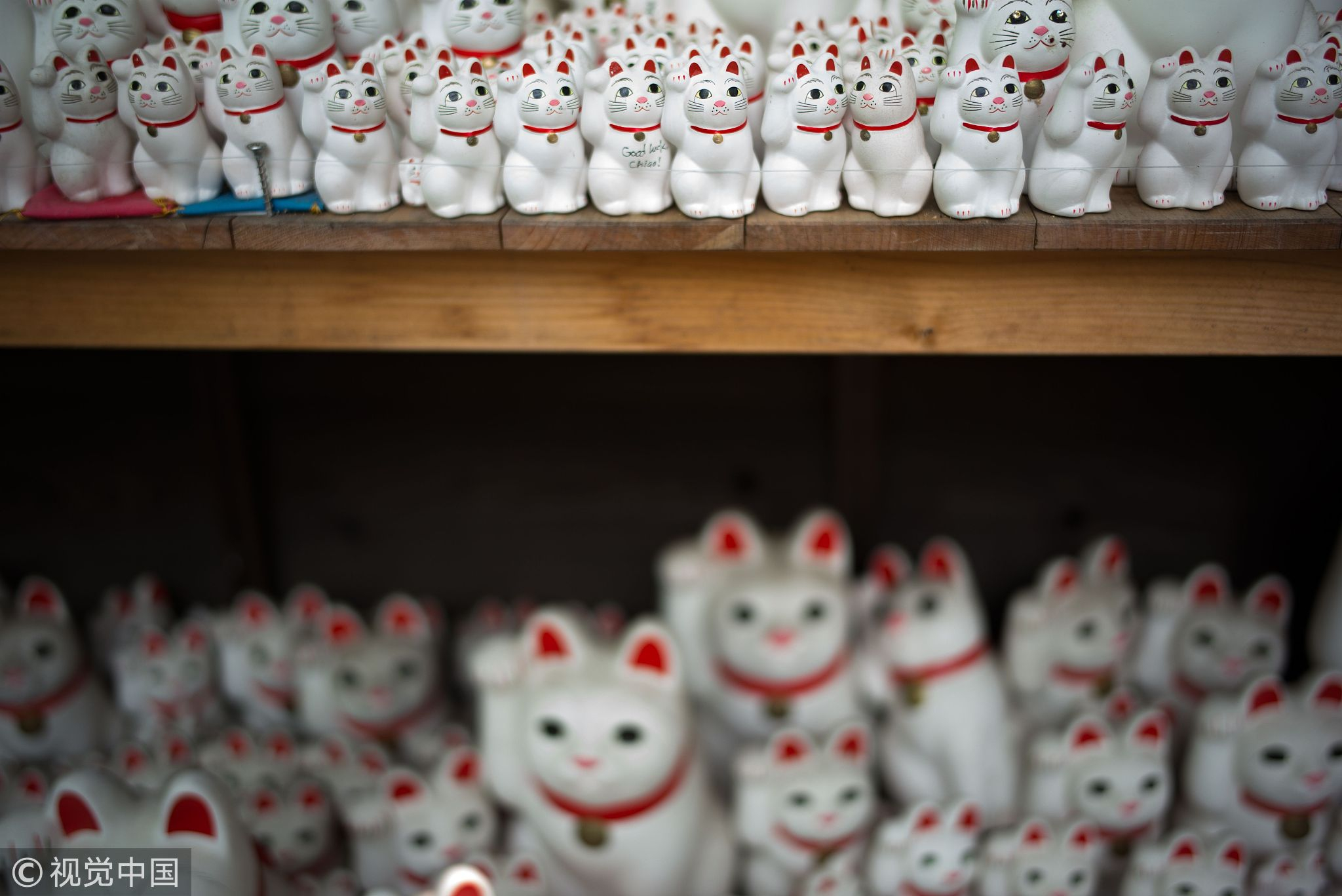 Cat figurines called "maneki-neko" at the Gotokuji temple in Tokyo. /VCG Photo
