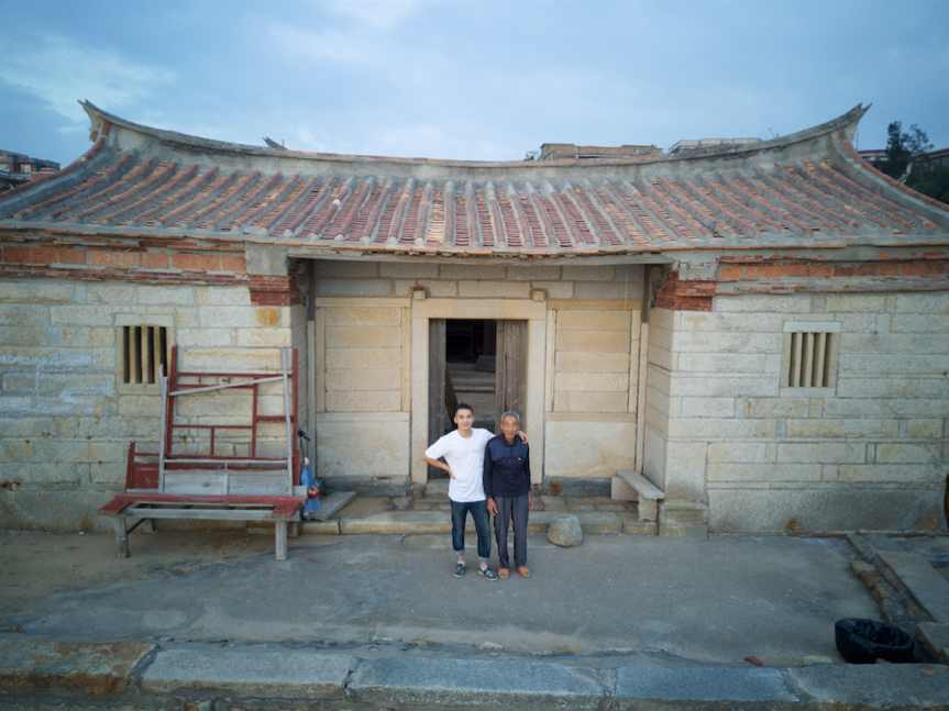 Hong Jindiao with his grandfather in front of their ancestral home. ©CGTN | Daken Art