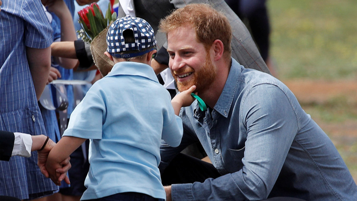 A heart-warming hug from a five-year-old greeted Britain's Prince Harry and wife Meghan at the Australian city of Dubbo on Wednesday. The boy first stroked the prince's beard and then hugged the Duke of Sussex. The royal couple is on their first international tour together which will also take them to New Zealand, Fiji and Tonga over 16 days.