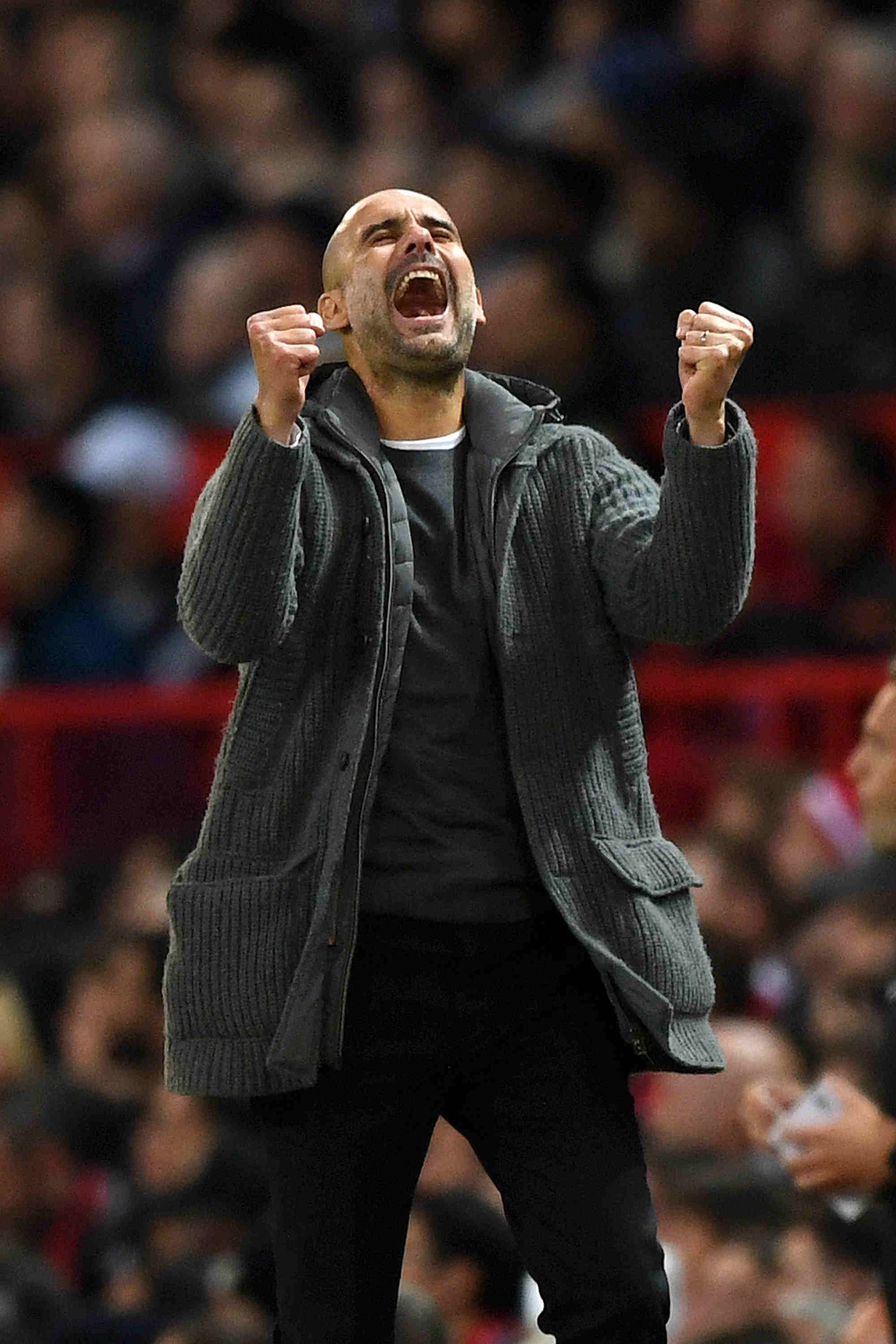 Manchester City manager Pep Guardiola at his team's victory over Manchester United in the Premier League match at Old Trafford in Manchester, UK, April 24, 2019. /VCG Photo