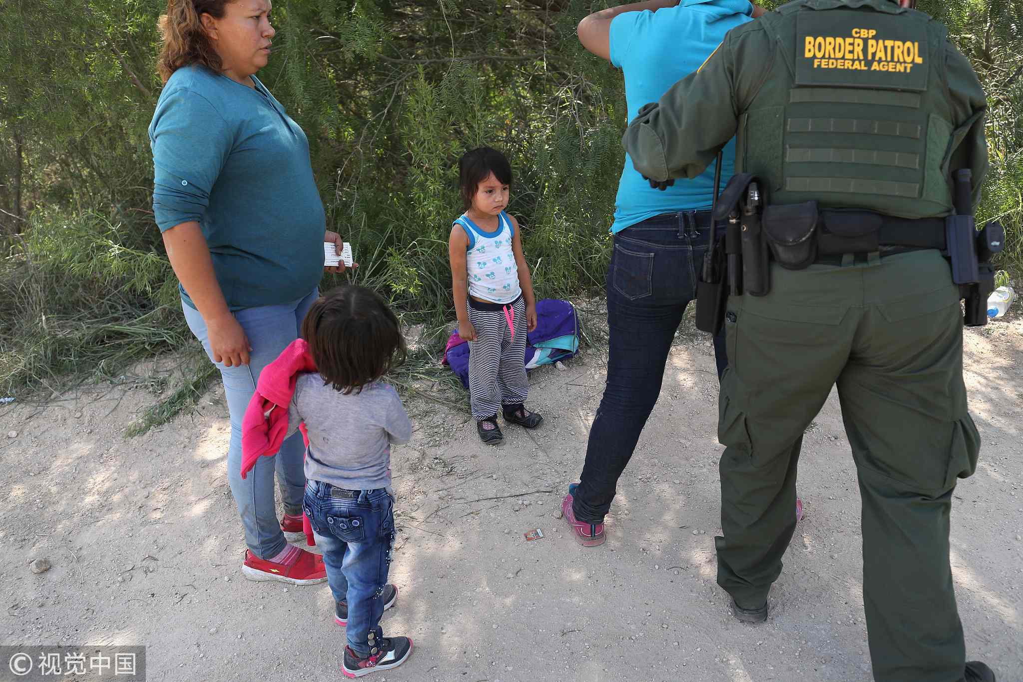US Border Patrol agents take Central American asylum seekers into custody near McAllen, Texas, June 12, 2018. /VCG Photo