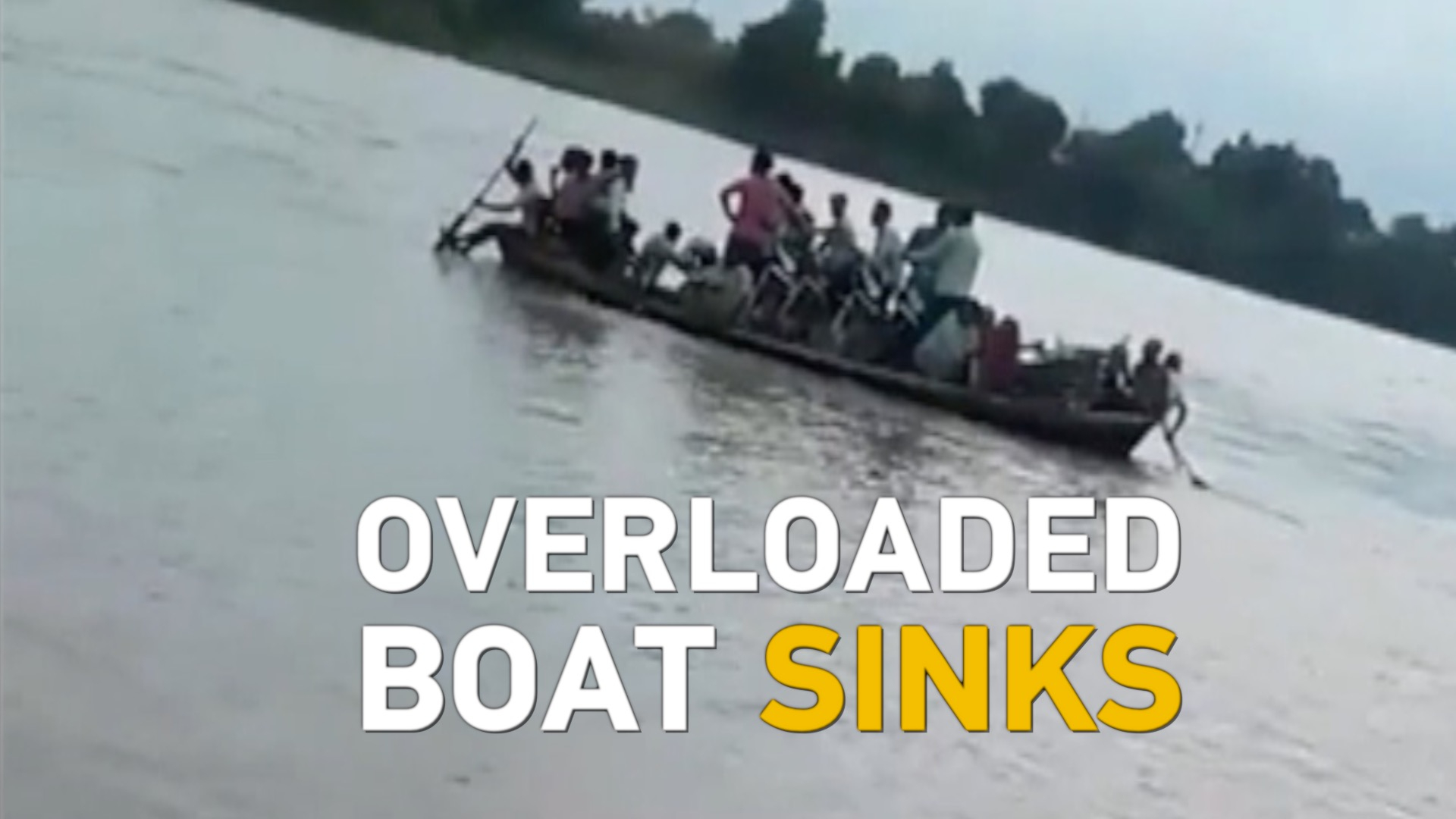 This footage shows the terrifying moment when a boat overloaded with 29 passengers was sunk in a flooded river in India on Sept. 7.