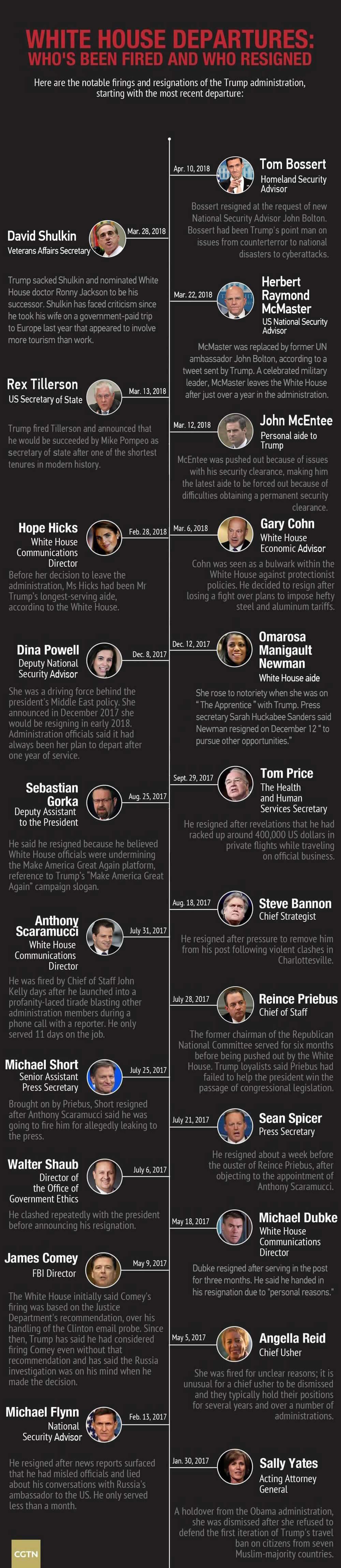 The White House has seen a raft of departures since Bolton began his new role in April.
