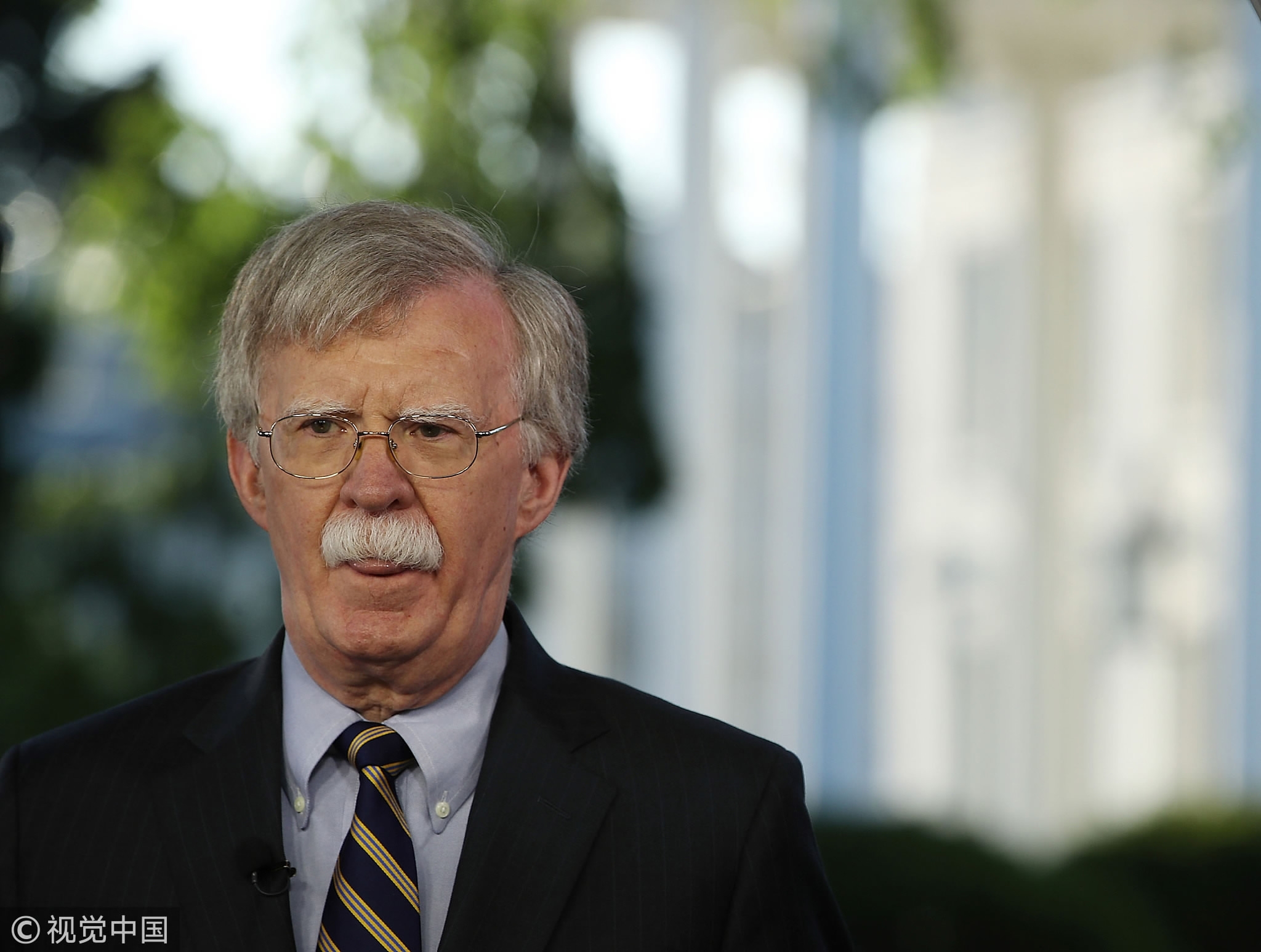 National Security Adviser John Bolton speaks on a morning television show from the grounds of the White House, on May 9, 2018 in Washington, DC. /VCG Photo
