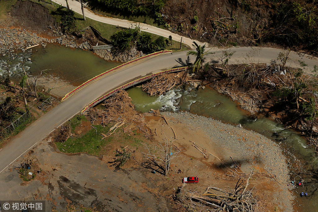A damaged bridge stands as recovery efforts continue following Hurricane Maria near Ciales, Puerto Rico, October 7, 2017. /VCG Photo