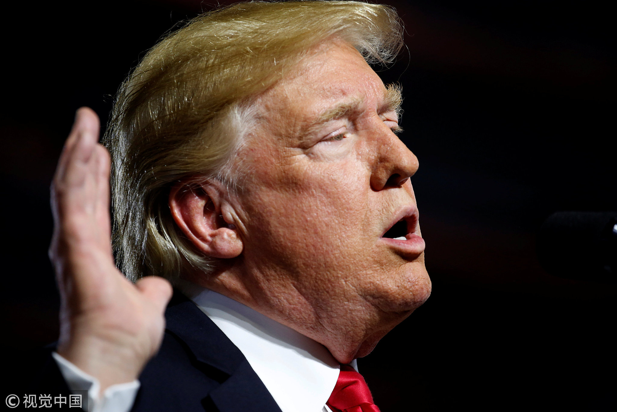 July 5, 2018: US President Donald Trump speaks during a Make America Great Again rally in Great Falls, Montana, US. /VCG Photo