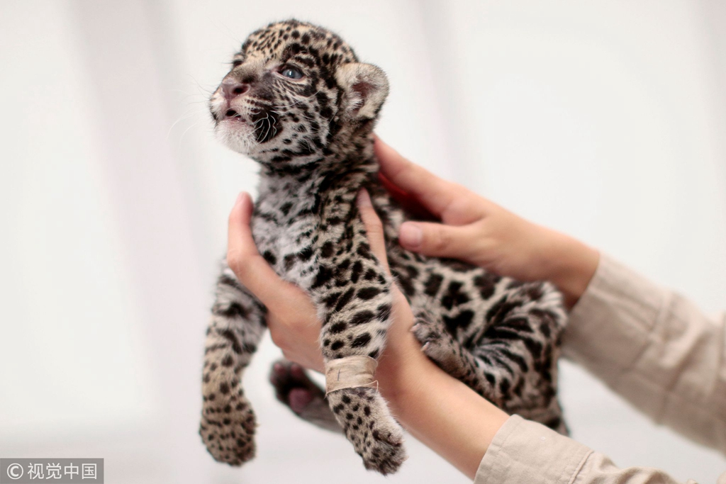 A jaguar cub is held in arms at the "Reino Animal" zoo in Teotihuacan, Mexico state, on June 16, 2016. /VCG Photo