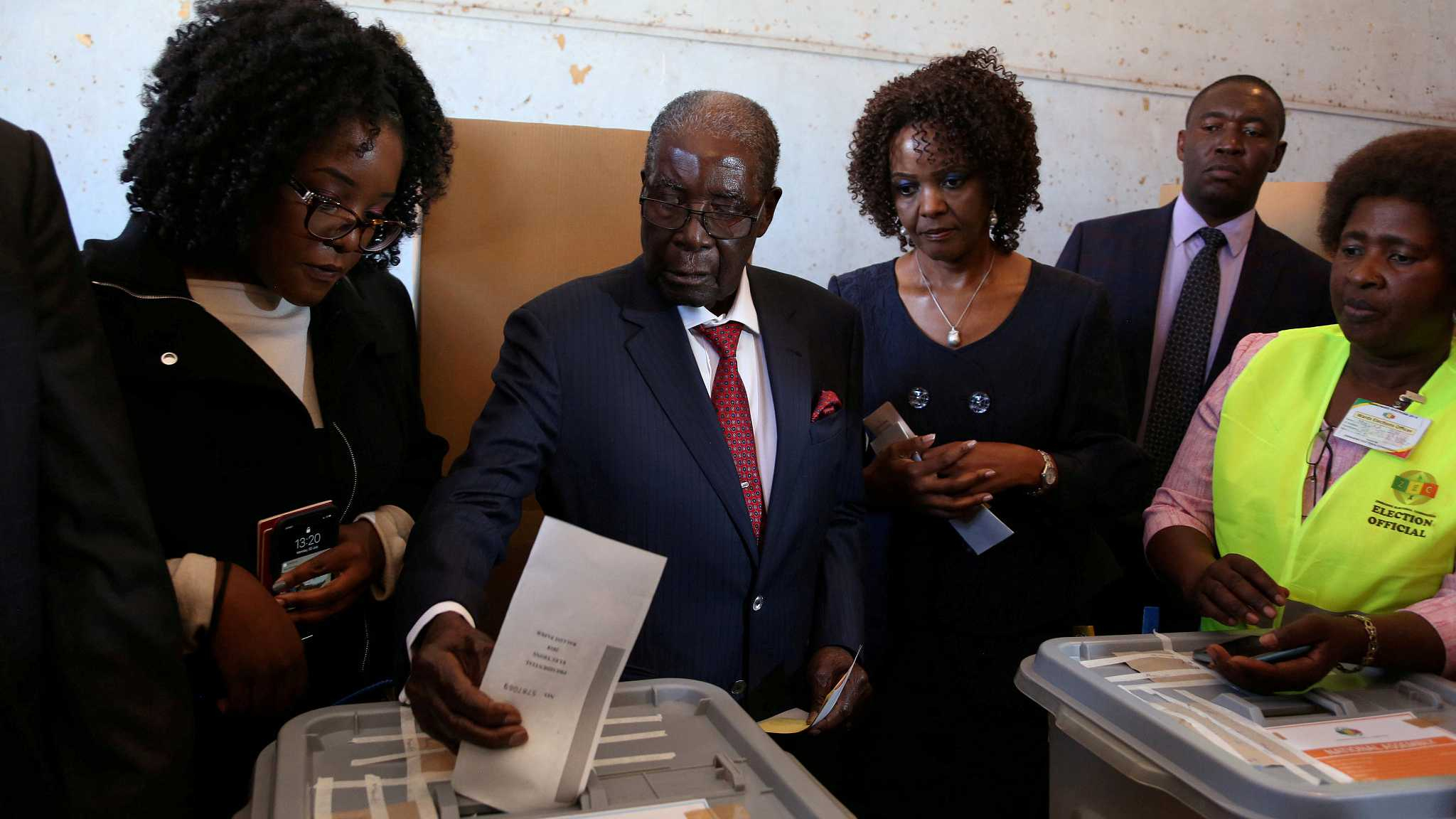 Zimbabwe's former president, Robert Mugabe, casts his ballot in the general elections in Harare, Zimbabwe, July 30, 2018. /VCG Photo