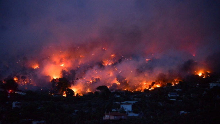 Video footage showed inhabitants fleeing the fires by car, with several buildings and homes damaged, as the region of Attica – where Athens is situated – declared a state of emergency.