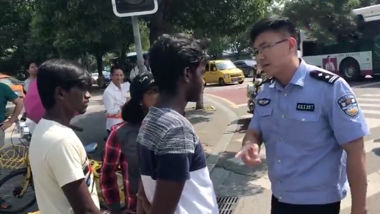 A traffic accident involving three foreigners occurred on Taoyuan Street in Nanchang City, east China’s Jiangxi Province, on June 11. Traffic police arrived immediately and explained China’s traffic regulations in fluent English to the three foreigners.