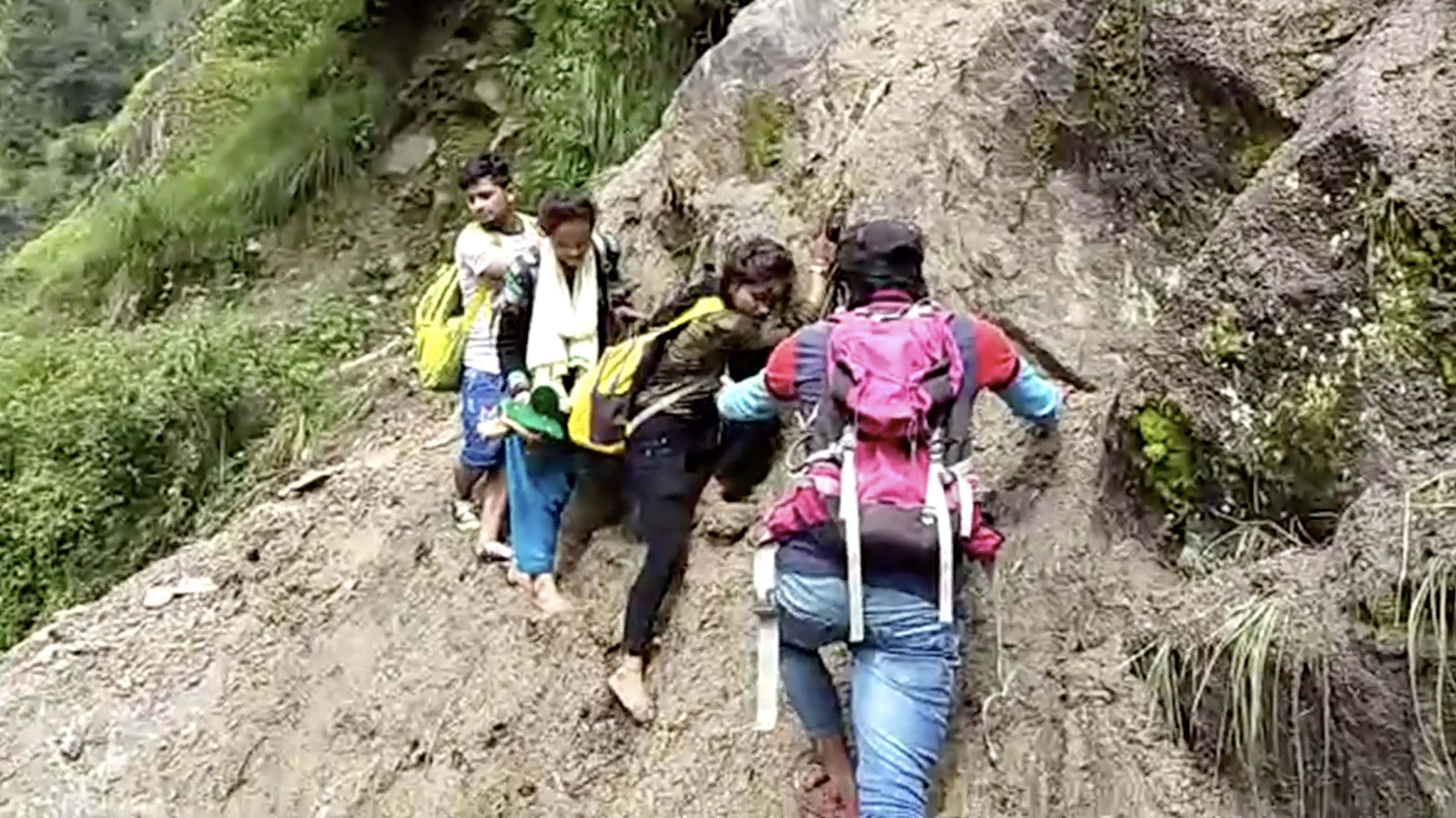Students in the Himalayas have to make an extremely dangerous trip to reach their college; one small slip could lead to a fatal fall. Some 300 families were cut off when a landslide blocked the only road to their village in Pithoragarh, India, in early August. Before the local administration cleared the road, people were forced to walk across the steep slopes to get to work.